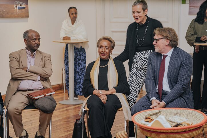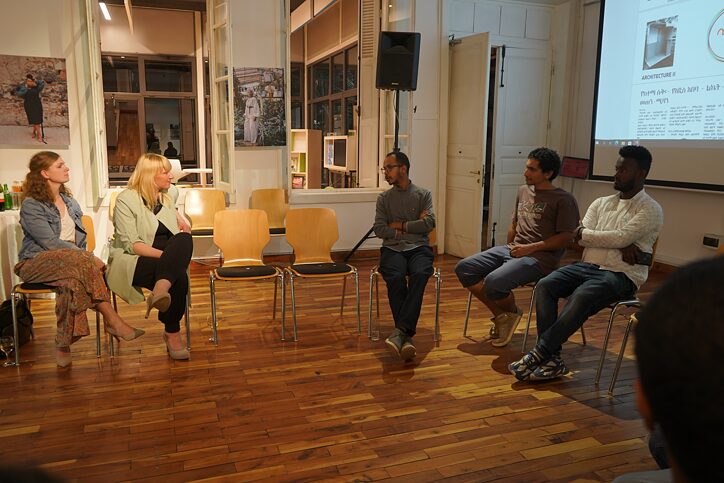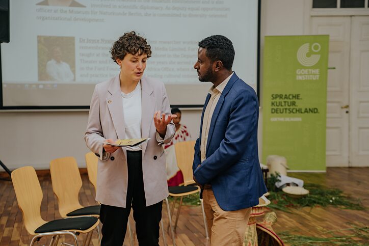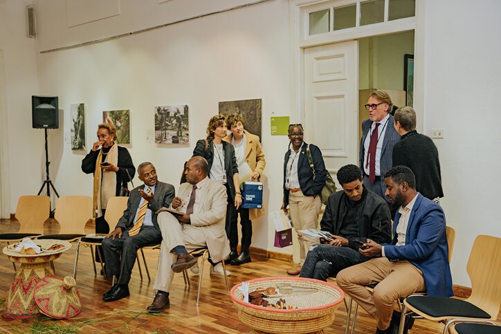 Nachdem sich die eingeladenen Partner*innen der Kulturarbeit des Goethe-Instituts mit ihren thematischen Schwerpunkten, Projekten, Motivationen und Ideen vorgestellt hatten, kam die Delegation bei traditionellem Kaffee mit den äthiopischen Gästen aus Film, Literatur, zivilgesellschaftlichen Organisationen und Museen über Fragen zur aktuellen äthiopischen Kultur- und Kreativlandschaft, über äthiopische und deutsche Kultur- und Museumspolitik, über dekoloniale Ansätze, Frauenrechte und Genderfragen sowie die Zusammenarbeit mit Europa ins Gespräch.