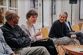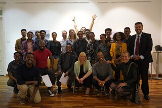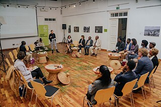 After the invited partners of the Goethe-Institut's cultural work had introduced themselves with their thematic focuses, projects, motivations and ideas, the delegation got into conversation with the Ethiopian guests from film, literature, civil society organisations and museums over traditional coffee about questions on the current Ethiopian cultural and creative landscape, about Ethiopian and German cultural and museum policy, about decolonial approaches, women's rights and gender issues as well as cooperation with Europe.