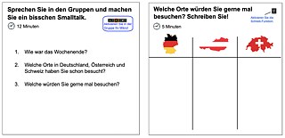 Die Umsetzung des DACH-Prinzips beginnt schon vor dem eigentlichen Unterricht. Im Warm-Up zu Beginn des Unterrichts wird den Lernenden mittels Smalltalk-Fragen die Möglichkeit gegeben, ins Deutsche ‘einzutauchen’. Man kann bereits diese Warm-Up-Phase dazu nutzen, das DACH-Prinzip umzusetzen, z. B. mit folgenden Fragen: