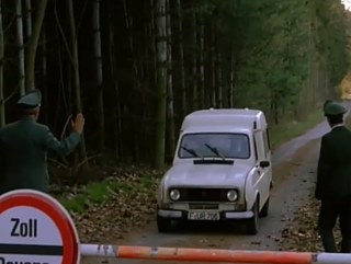 Autre lieu, autre temps. Extrait d’un film qui pourrait être (on n’en met pas sa main à couper) Le pouvoir des sentiments (1983), signé Alexander Kluge. Un poste frontière franco-allemand, inepte, au milieu d’une forêt. Un des douaniers, suspicieux, qui brise et broie entre ses doigts le rouge à lèvres de la fille. Plan énigmatique. La frontière comme négation de la civilisation, défiance obtuse, réduction sanglante ?