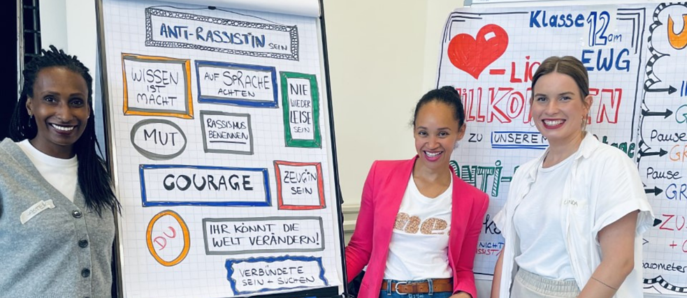 Soziale Medien haben in diesem Zusammenhang einen besonderen Stellenwert. „Sie sind Fluch und Segen“, findet Griselda. Betroffene können sie nutzen, um sich zu vernetzen und sich Unterstützung zu holen, sie können aber auch ganz leicht missbraucht werden, um rassistische Sprache, Hass und Gewalt weiter zu verbreiten. Daher sei es so wichtig, dass es für die Nutzung von Social Media im Schulalltag ganz klare Regeln gebe und Klassenchats unbedingt von Lehrpersonen moderiert werden sollten.Es brauche verlässliche Strukturen, fordern die Aktivistinnen von We A.R.E. Wenn jemand klaut und erwischt wird, hätte dies in unserer Gesellschaft klare Folgen. Wenn jemand ein Kind auf dem Schulhof rassistisch beleidigt oder in einer Klassen‑WhatsApp‑Gruppe mobbt, fehlen in vielen Schulen klare Konsequenzen und eindeutige Ansprechpartner*innen, zum Beispiel Antidiskriminierungsbeauftragte. „Dass es gerade in Großstädten und sogar auf Bundesebene auch Antidiskriminierungsstellen und Beratungsangebote gibt, wissen die meisten Betroffenen und ihre Eltern gar nicht und muss besser kommuniziert werden“, kritisiert Linda.
