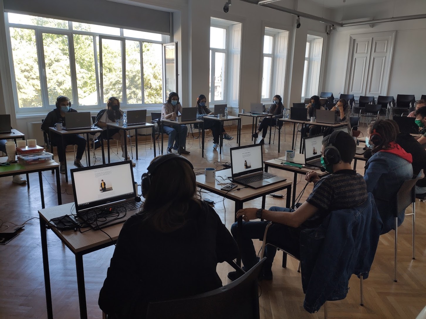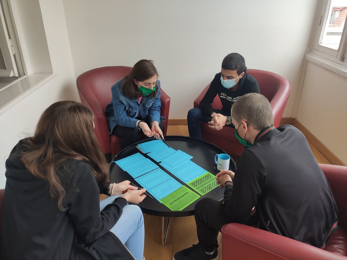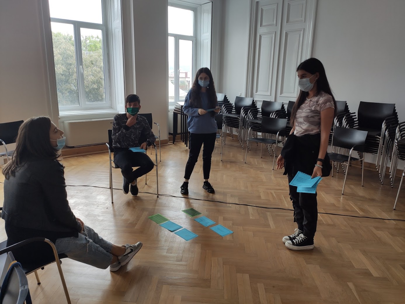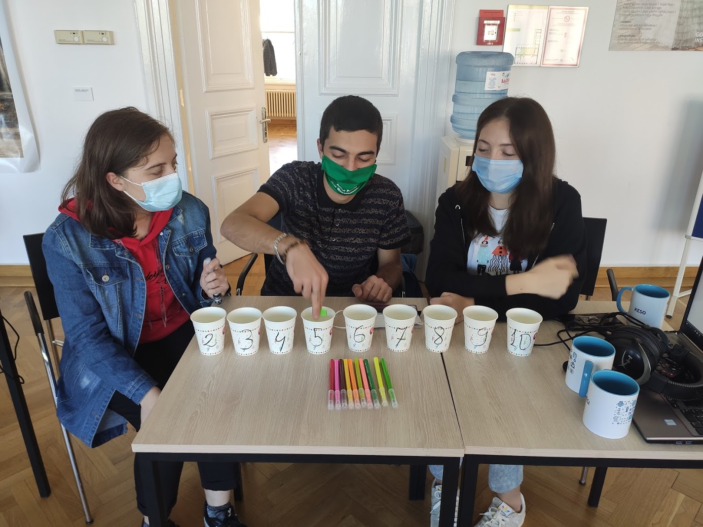 Das Seminar fand im Oktober zentral am Goethe-Institut Tiflis statt, im November nahm eine weitere Gruppe Schüler*innen von zu Hause aus teil. Beide Veranstaltungen leitete Carina Geldhauser von Schweden aus in einem digitalen Klassenzimmer. Zur Auflockerung gab es dazwischen Einheiten ganz ohne Laptop, in denen beispielsweise eine KI aus Pappbechern gebaut wurde.