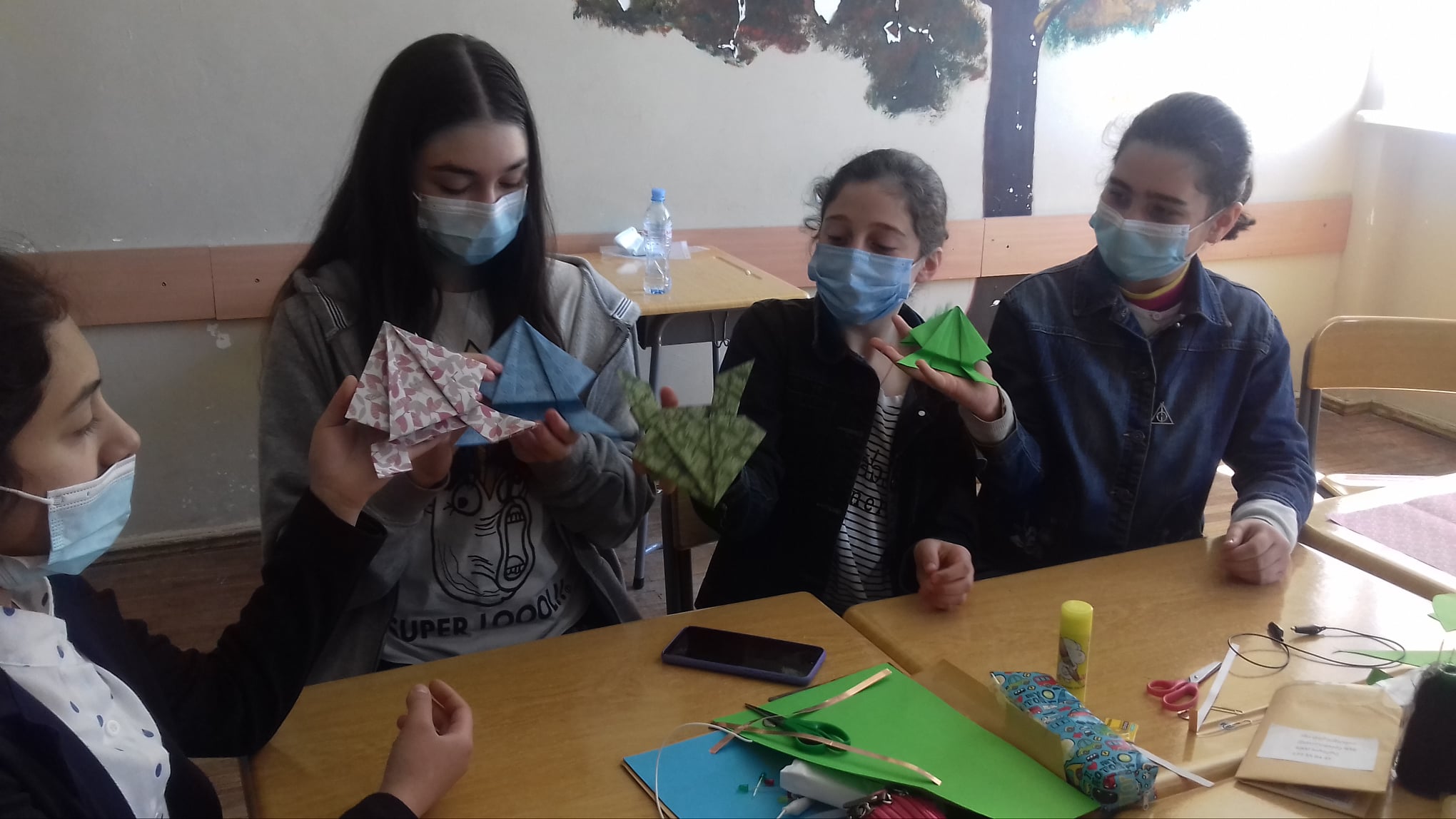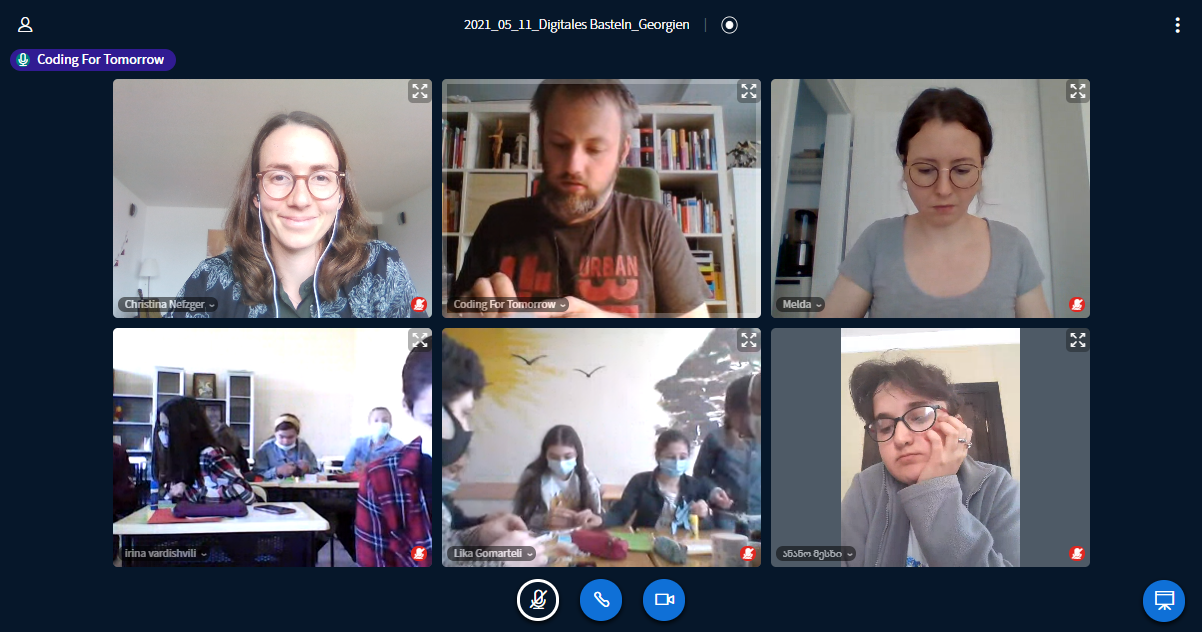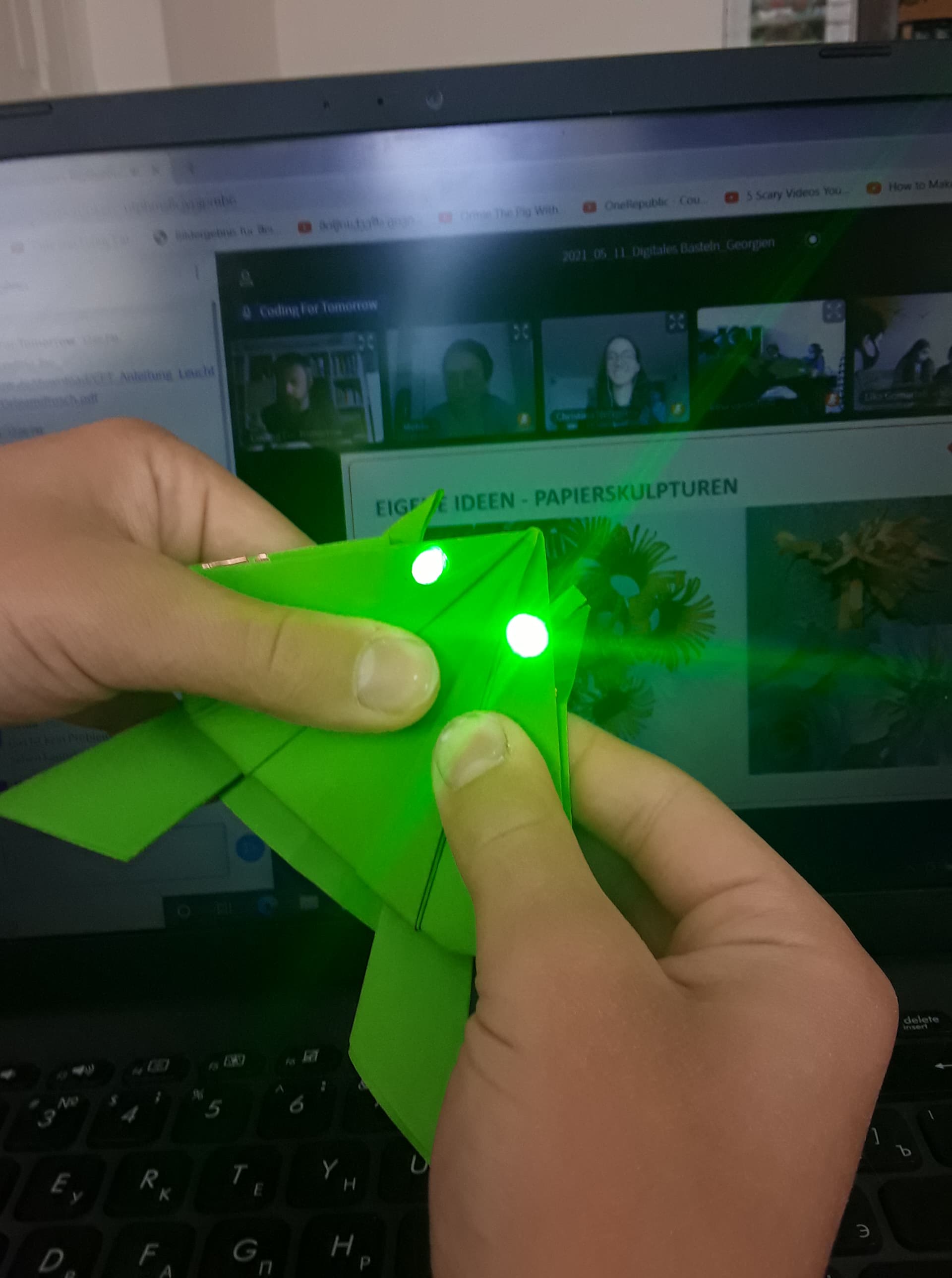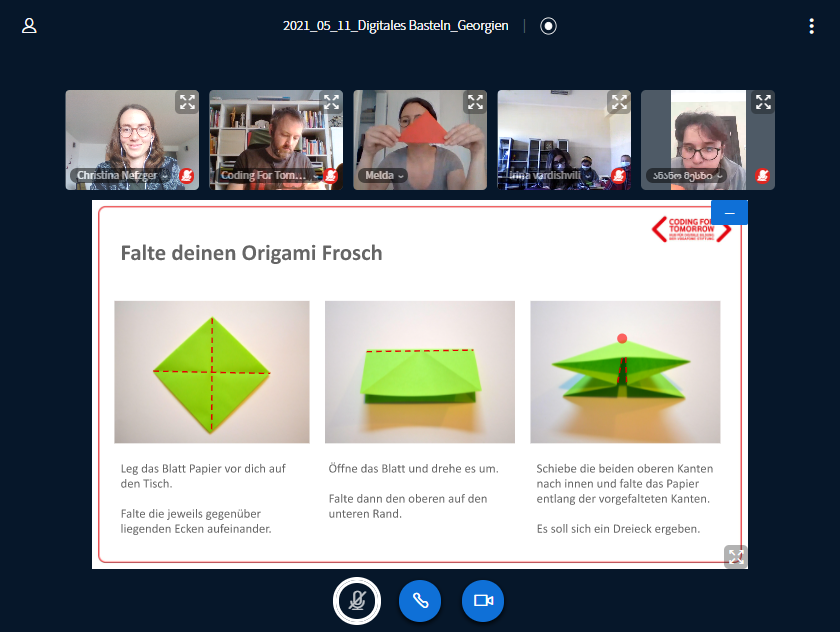 In diesem Workshop wurde Basteln digital. Georgische Schüler*innen falteten Origami-Frösche und erweckten sie durch leuchtende Augen zum Leben.