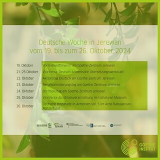 19-დან 26 ოქტომბრამდე გოეთეს ინსტიტუტმა ZfA, DAAD-სა და გერმანულ ეკონომიკურ გაერთიანებასთან ერთად ერევანში გერმანული კვირა დააორგანიზეს!