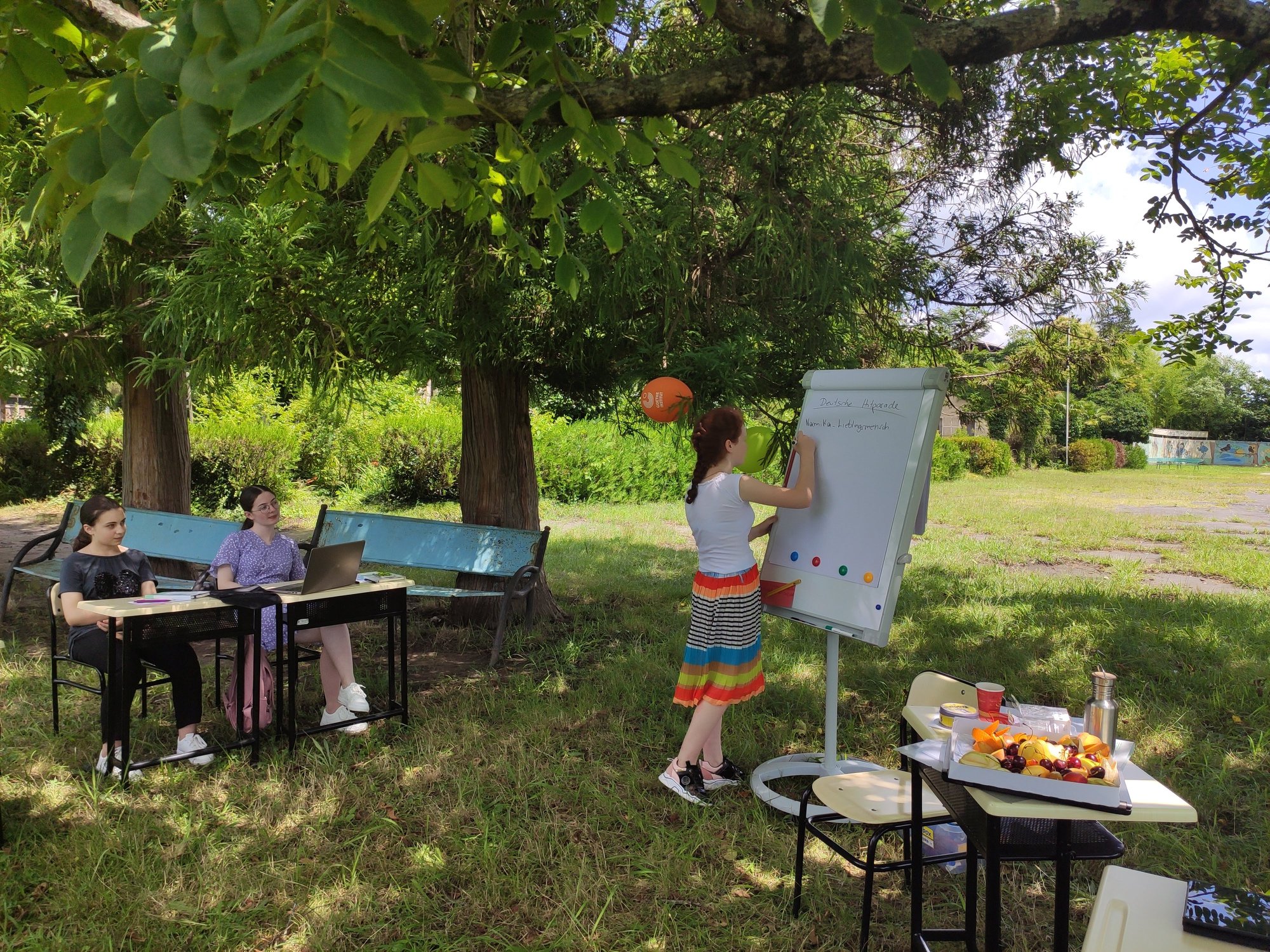ხანგრძლივი ონლაინ გაკვეთილების შემდეგ ისევ არდადეგები და თავისუფალი დრო სახლში. კახათის პირველი საჯარო სკოლის ცხრა მონდომებულ მოსწავლესთან ერთად სკოლის ეზოში საინტერესო სამდღიანი საზაფხულო პროექტი განვახორციელეთ, რომლის ძირითადი თემა მუსიკა იყო, ამოსავალი წერტილი კი ჯურნალი LINGO macht MINT-Magazin „Musik zum Leben“ (ჟურნალის ონლაინ ვერსიის უფასოდ ჩამოტვირთვა აქ: