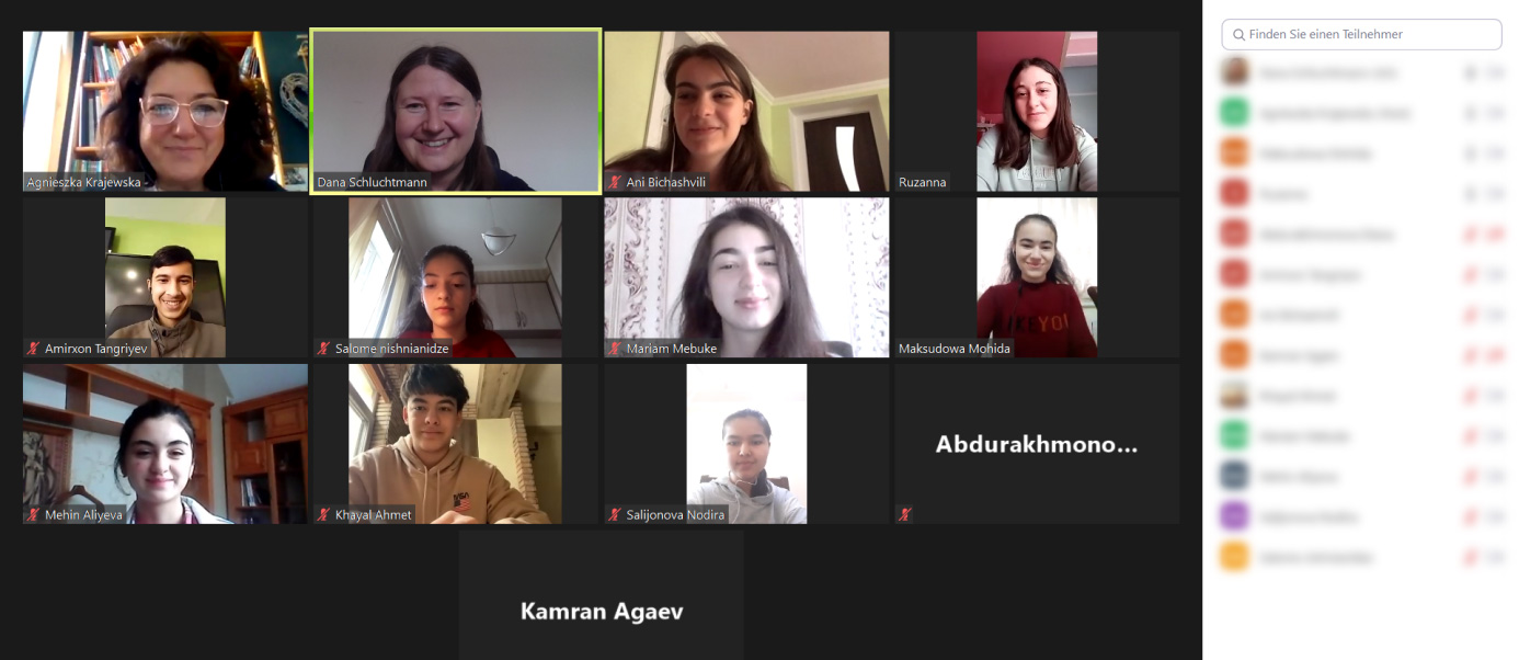 Mit diesen Fragen beschäftigten sich Schüler*innen aus Georgien, Armenien, Aserbaidschan und Usbekistan an vier Sonntagnachmittagen im März. An jedem Seminarnachmittag stand ein Thema im Fokus, zu dem dann in Form kleiner Projekte, zusammen diskutierter Videos und aktiver Aufgaben gearbeitet wurde: