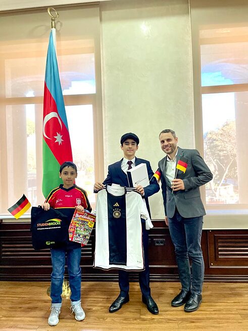 Die Plätze 2 und 3 belegten ein Schüler von der Sechsten Autorisierten Schule in Tbilissi und ein Schüler, der ebenfalls in die 6. Schule in Baku geht. Sie erhielten neben PASCH-Trikots auch Sachpreise und eine deutsche Fußballzeitschrift.
