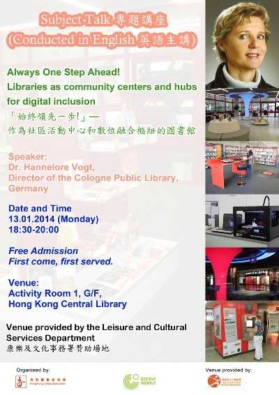 “圖書館作為形象載體!”這是科隆市立圖書館館長哈娜羅勒•佛格特博士的理念。她將在報告中通過實用性的例子闡述這一呼籲所包涵的用意——圖書館在電子時代所面臨的改變、機遇與挑戰。她將談及圖書館的新型(電子化)服務項目和內容,並解釋圖書館空間將在未來發生怎樣的改變。