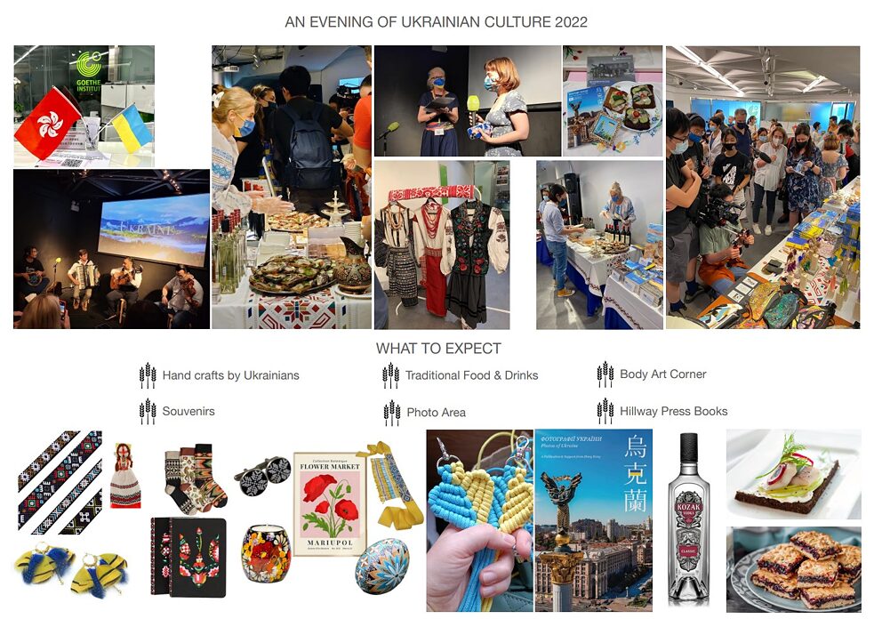 香港歌德學院很榮幸能與香港烏克蘭協會攜手合作,於 2023 年 8 月 29 日(星期二)在學院的歌德藝廊及黑盒子舉辦「烏克蘭文化之夜」。活動由市集和音樂會組成,得到了香港首家傳統烏克蘭餐廳 Ivan the Kozak 和探戈樂隊 Cafe 852 創辦人 Nazar Tabachyshyn 的大力支持。市集免費入場,音樂會的門票現於art-mate.net公開發售。