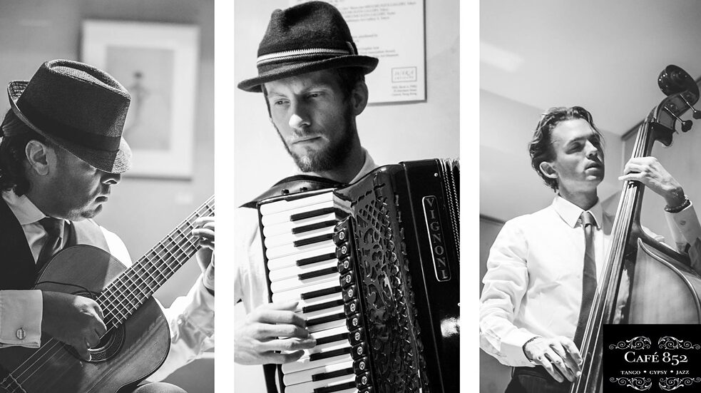 Cafe 852 ist die erste argentinische Tango-Band in Hongkong, die live Tango, Milonga und Zigeunermusik spielt. Das Trio, das erste seiner Art in Hongkong, besteht aus Nazar am Akkordeon, Soujit an der Gitarre und Farley an Bass und Trompete.