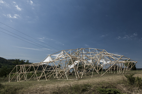 2013 setzten sich die Teilnehmer ausnahmslos mit Formen der alltäglichen Interaktion auseinander, die die Menschen so ausgeprägt vorfinden, dass sie sie meist gar nicht hinterfragen. Ein Beispiel dafür ist das Lagerfeuer, das dank der gemeinsamen Arbeit von András Cseh und Bálint Veres nunmehr auch von jenen unmittelbar genossen werden kann, die nicht ganz vorne sitzen können. Im „FeuerHERD“, einem mobilen Konstrukt aus Sitzbänken nämlich sind die hinteren Reihen wie in einem Amphitheater höher gestellt, so dass man von ihnen auf das lodernde Feuer in der Mitte blicken kann. Áron Losonczi und Bence Turányi reagierten mit ihrem Musiksharing-Gerät „iWood“ auf jene inzwischen völlig normale Situation, dass in einer Gesellschaft alle mit ihren Handys beschäftigt sind. Ohne diese moderne Idylle ihres digitalen Elements zu berauben, werden hier die Teilnehmer mit Hilfe einer analogen Technik, einem Holzgerät zum Musiksharing, miteinander verbunden. So kann die Gesellschaft die Vorteile moderner Technik (in diesem Fall das bequeme Musikhören) gemeinsam genießen, ohne voneinander isoliert zu werden.Suzana Milinovic’ und Rufus van den Bans Projekt „Panorama Peep Hole“, das auch den Publikumspreis gewann, ist eigentlich nichts anderes als das vermutlich kleinste Lokal der Welt, das unter den Teilnehmern als „Body Bar“ bekannt wurde. Das Duo setzte sich zum Ziel, auf 1,44 Quadratmeter die maximale Zahl von Gästen und Wirtshausfunktionen unterzubringen, wobei die „Körperbar“ trotzdem bequem und funktionsfähig bleiben und die Menschen durch die intensive Nähe zu neuen Formen der Interaktion anregen sollte. „Mordors Mühle“ wiederum ist ein Windkraftwerk, eine monumentale, 6 Meter hohe Windmühle, die konkret für einen Windkanal der Gegend entworfen wurde und um deren zentrale Achse 24 Blätter rotieren. Ihre Konstrukteure, Nándor Nagy und Bulcsú Szabó, wurden wohl ebenso durch die Vorsehung wie auch praktisch durch einen Traktor unterstützt, als der monumentale Wundermechanismus aus seiner liegenden Position aufgerichtet wurde, um mit dem endlosen Rotieren zu beginnen. Dia Harcsa und Tibor Dékány legten größten Wert auf die Einfachheit, indem sie einen 43 Meter langen Designer-„Tisch“ bauten und damit die gemeinschaftsstiftende Rolle der gemeinsamen Mahlzeiten und Gespräche betonten. Áron Vass-Eysen, Zsolt Frikker und Béla Gál errichteten in einem unbenutzten Trakt des Dorflokals von Kapolcs den „Kapo_cs“-Platz (d.h.: „Verknüpfung“), der zwei Bereichen verbindet und die Kontakte zwischen einheimischen und fremden Gästen im Lokal fördern kann.