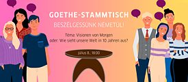 Goethe-Stammtisch Wir laden die Freunde der deutschen Sprache zu unserem Goethe-Stammtisch ein. Bei jedem Termin kann man sich über ein spannendes Thema unterhalten. © Goethe-Institut © Goethe-Institut