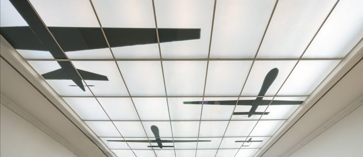 Ruben Pater ezzel a munkájával azokra a kihívásokra készíti fel az embert, amelyek bizonyos új technológiákból adódnak. Twenty-first Century Birdwatching (madármegfigyelés a 21. században) című sorozata például, amelyből erre a kiállításra három darabot választottunk ki, azzal a körülménnyel foglalkozik, hogy ma nem csak madarak és repülőgépek láthatók az égen, hanem a ragadozó állatok egy eddig nem ismert fajának példányai is: a drónok, amelyeknek emberek a zsákmányai. A 21. század embere számára ezért létfontosságúvá, sőt túlélési kérdéssé vált, hogy fel tudja ismerni, ha egy drón megfigyeli, vagy gyilkos szándékkal közelít felé. Ugyanakkor azt is fontos tudnunk, hogy mi a teendő, ha drónnal találkozunk – ahogyan azt sem haszontalan tudnunk, hogyan viselkedjünk egy vadállattal szemben, ha menteni akarjuk az irhánkat. Néha ki tudjuk fürkészni a drónok körvonalait az égen, de mint a madarak esetében, többnyire nem látjuk őket, hanem csak halljuk. A madárcsicsergést, amely hagyományosan minden tavasszal megtölti a leget, napjainkban a drónok surrogása váltja fel. Kezében Ruben Pater kalauzával, feje felett a drónok sziluettjével és fülében a drónok zúgásával, a látogató átérezheti azok helyzetét, akik nap mint nap hallják ezeket a zajokat, és nap mint nap látják ezeket az árnyékokat – és egy közelgő katasztrófa jeleként értelmezik.