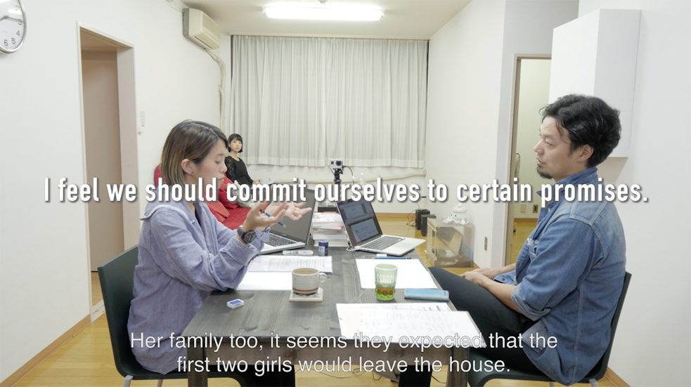 In „I am not a Feminist“ haben wir versucht in Form eines Ehevertrags, alternative Wege der Ehe aufzuzeigen, die nicht in die Kategorien „unverheiratet, verheiratet und eingetragene Lebenspartnerschaft“ passen. Da es viele Kategorien gibt, die von der jeweiligen Position des Feminismus abhängen, sollte es sinnvollerweise auch verschiedene Arten der Ehe geben. Dennoch treten auch hier Probleme auf. Artikel 754 des Bürgerlichen Gesetzbuches sieht vor, dass eheliche Verträge jederzeit durch einen der beiden Partner aufgehoben werden können. Um einen rechtsicheren Vertrag zwischen zwei Personen zu schließen, dürfen sie, wenn sie den Vertrag schließen, deshalb nicht miteinander verheiratet sein. Damit der neue Ehevertrag auch rechtlich wirksam ist, war es deshalb notwendig unsere bestehende Ehe einmal aufzulösen.Darum haben wir uns vor unserer Hochzeit im Goethe-Institut Tokyo scheiden lassen um einen alternativen rechtssicheren Ehevertrag schließen zu können. Die neue Vertragslaufzeit beträgt drei Jahre. Dieser Zeitraum verlängert sich nach jeder Erneuerung um ein Jahr. Vor jeder Erneuerung werden wir uns einmal scheiden und unsere Ehegemeinschaft neu eintragen lassen.