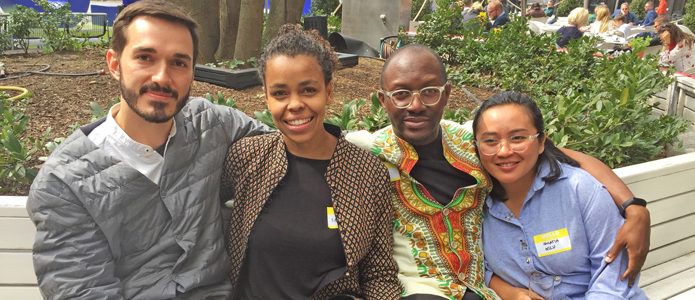 „Book, pledge and be artsy“ ist das Motto der neu entwickelten App „Musel” von Kofi Sika Latzoo, Kouassi Junior Attreman, Dharwis Widya Utama Yacob und Emmanuel Thomas Malongo (v.r.n.l.)