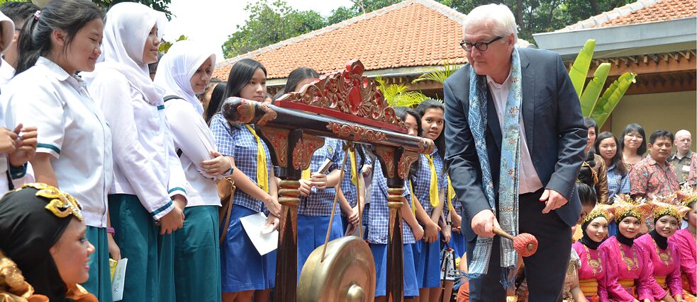 Frank-Walter Steinmeier mit Gong | © Goethe-Institut Indonesien