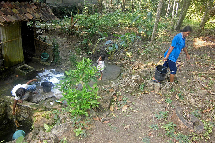 The village of Donomulyo, in the sub-district of Nanggulan, is located in a hilly area in Kulon Progo Regency. The environment greatly influences the daily lives of the people who live here. Many of them are susceptible to sickness, as access to clean water is limited for general use as well as consumption. After the PAMSIMAS II project was launched in 2014 in Kulon Progo, the inhabitants of Donomulyo formed the BP-SPAMS “Sindu Wening” work group supported by the village administration. The PAMSIMAS project in Donomulyo received 270 million rupiah in financial support from the central and local government. The project resulted in solving the problem of access to clean water. The people of Donomulyo now not only enjoy a better quality of life, but their behaviour patterns have also changed. For example: