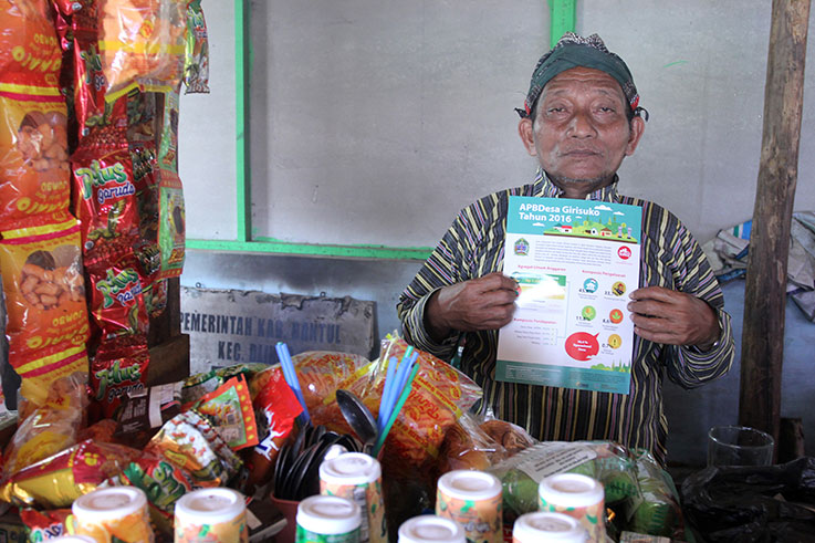 Suwandi, a sate (or satay) vendor, says that he has been instructed in how to use a mobile phone and that it is now easy for him to access the village information system and use the internet. He proposes that posters and signs should be placed in strategic locations in the village in order to further promote budget transparency.