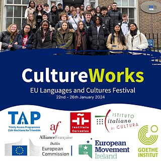 Den europäischen Kontinent zu bereisen, war noch nie so einfach wie heute: Flugverbindungen zum Festland kosten zum Beispiel oft weniger als ein Taxi - das Ziel des einwöchigen CultureWorks Programmes ist es, Schüler*innen der 10. Klasse an die europäischen Kulturinstitute in der Stadt Dublin heranzuführen und ihnen so den Zugang zu den Kulturen und Sprachen Europas zu erleichtern.