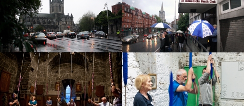 The next memory that comes to mind is walking down to Christchurch Cathedral on the evening of 21 June 2012. The sound of cars on the wet pavement was slick and present. Garrett Phelan’s New Faith Love Song commenced at 9 pm. The bell towers from two adjacent cathedrals performed a minimal, synchronized composition. I began with a scattered group of people at a chosen location situated between the two cathedrals, but quickly set off to explore the event as it unfolded, following the sound of the bells as they echoed from street to street, performing on the infinity of brick and concrete surfaces that constitute the city. The new faith at stake was clearly plural, to be discovered on one’s own terms.