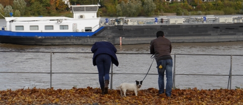Christina Kubisch: Rheinklänge; 2013. Passers-by stopping to listen to sounds from two hydrophones transmitting live the underwater sounds of the ships in the river. Image courtesy of the artist.