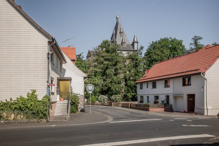 Im hessischen Romrod ist die Schlossallee nur der 350 Meter lange, sehr schmucklose und zweckdienlich angelegte Zubringer zum mitten im Ort gelegenen Schloss. Eine Handvoll Häuser liegt an der Straße. Und ein Gasthof. Und ein Geldautomat.