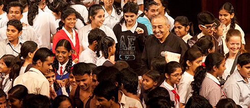 Astad Deboo und seine Gruppe mit Schulkindern