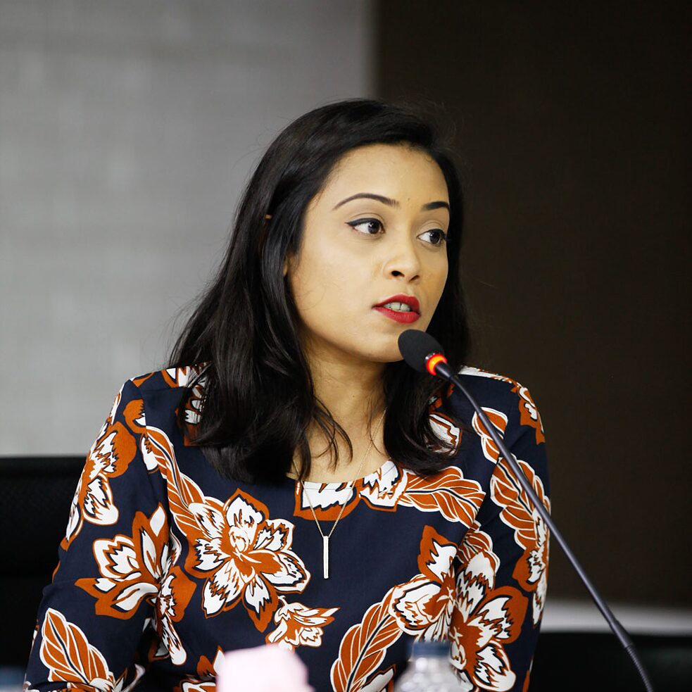 Esha Aurora ist Redakteurin für Wirtschaft bei der Dhaka Tribune, Bangladesch. Sie ist eine unverblümte Feministin. Sie setzt sich leidenschaftlich für den Abbau systemischer Diskriminierung und die Sensibilisierung für die Zusammenhänge zwischen Wirtschaft und Diskriminierung, einschließlich Rassismus und Sexismus, ein.