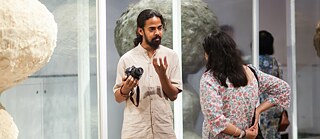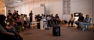 In diesem Video nimmt Sie die Ko-Kuratorin Mira Hirtz vom ZKM in Karlsruhe mit auf einen besonderen kuratorischen Spaziergang durch die Ausstellung in Kalkutta.
