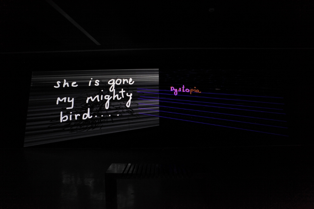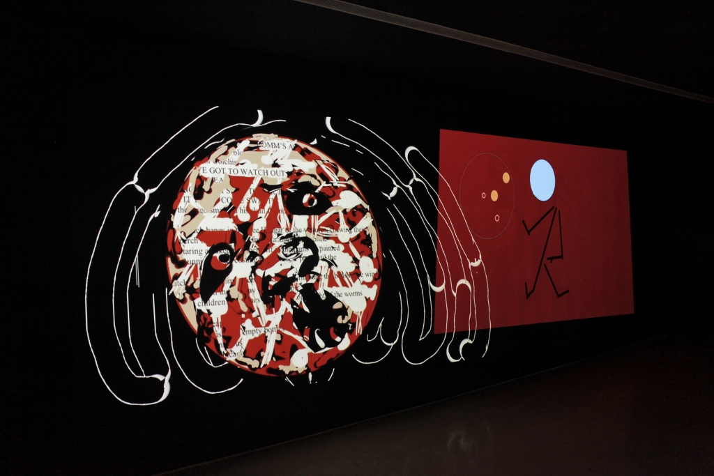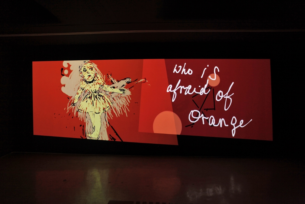 Can You Hear Me? stammt aus einer Animationsarbeit aus dem Jahr 2018, in der es um ein minderjähriges Mädchen geht, das vergewaltigt wurde und deren Schreie niemand hörte. Dieser erbarmungswürdige Schrei, diese Stimme der Entrechteten, die nicht gehört, bzw. bewusst ignoriert wird, wird in verschiedenen Registern des Ironischen und Absurden mit leuchtenden Farben und verfremdeten Tonspuren präsentiert.