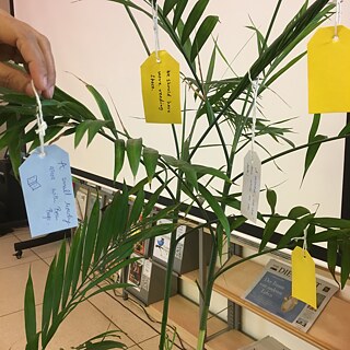Die vier Pflanzen der Bibliothek verwandeln sich in März zu Wunschbäume. Stift und Papier halten wir auch bereit! Jetzt bist du dran!