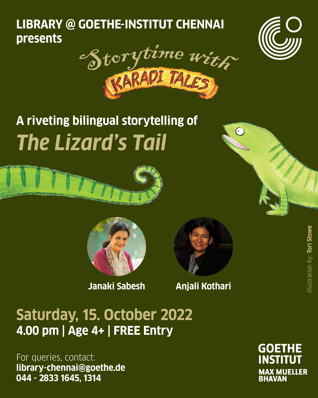 Eine kleine Eidechse verlor ihren Schwanz und machte sich auf die Suche nach einem neuen. Dabei entdeckte sie eine Eidechsenheim-Wahrheit!!!! Wolltet euch wissen, was diese Wahrheit ist? Kommt mal diesen Samstag zu uns und hört mal diese zweisprachige Geschichte zu, um die Wahrheit selbst herauszufinden