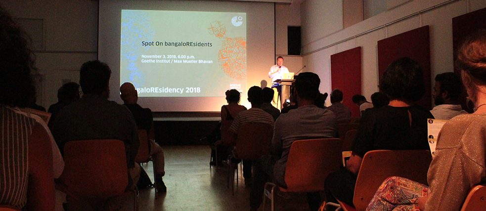November 3rd. 6 PM. After a few days in Bangalore, it was time for the bangaloREsidents to tell Bangaloreans what they hope to work on during their stay and what kinds of inputs they are seeking from locals. Spot on bangaloREsidents, an evening of presentations by the residents, was an opportunity for them to connect with Bangalore’s community of artists. The event was attended by members from the host organisations, as well as local practitioners from theatre, dance, film, urban design, and music.