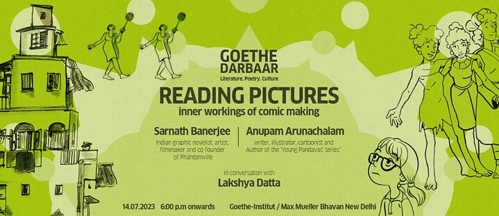 Together with comic writers and artists Sarnath Banerjee and Anupam Arunachalam, we explore the symbiosis of art and literature in this issue of Goethe Darbaar. How do words and images intertwine to create profound narratives? Join the moderator Lakshya Datta and the two artists as they delve into the realm of visual storytelling.