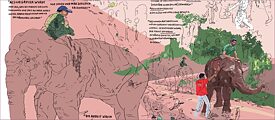 The illustrator and comic artist Olivier Kugler travels the world as a reportage artist. In Laos, he accompanied a veterinarian into the jungle to care for loggers' working elephants. French vet Bertrand Bouchard invited the London-based cartoonist to travel with him deep into the jungle for a few days and record what they experience.
