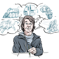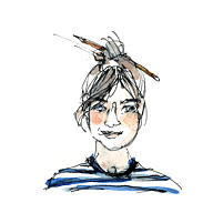 While drawing Alexandra Klobouk always tries, above all, to tell stories, and with humour. If drawing on the spot, she identifies a particular section or detail that she would like to capture and then try to further reduce the scene down to its essence – through comments, reduction or exaggeration. The artist from Regensburg has received several awards.