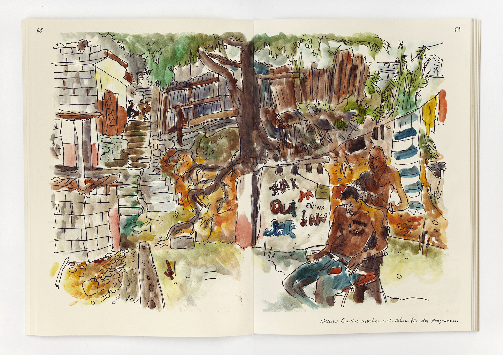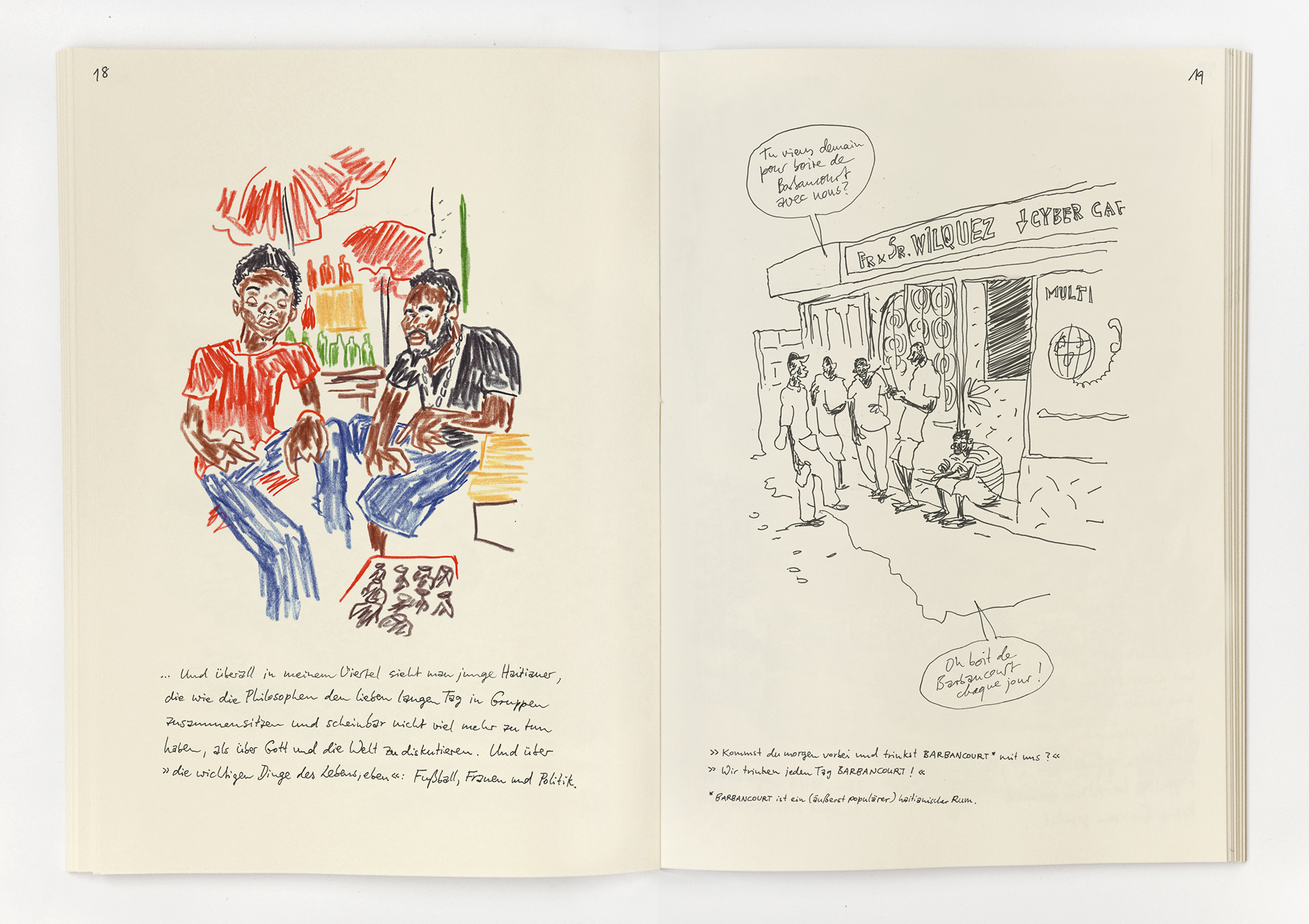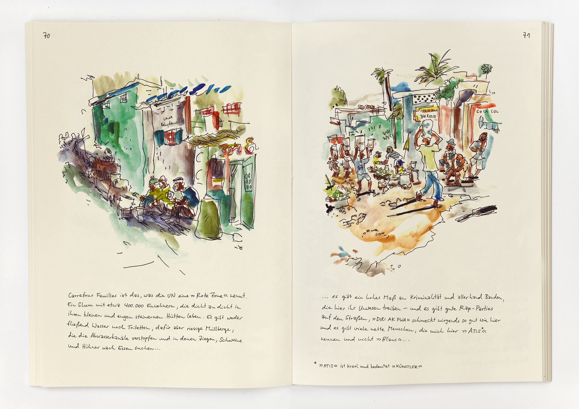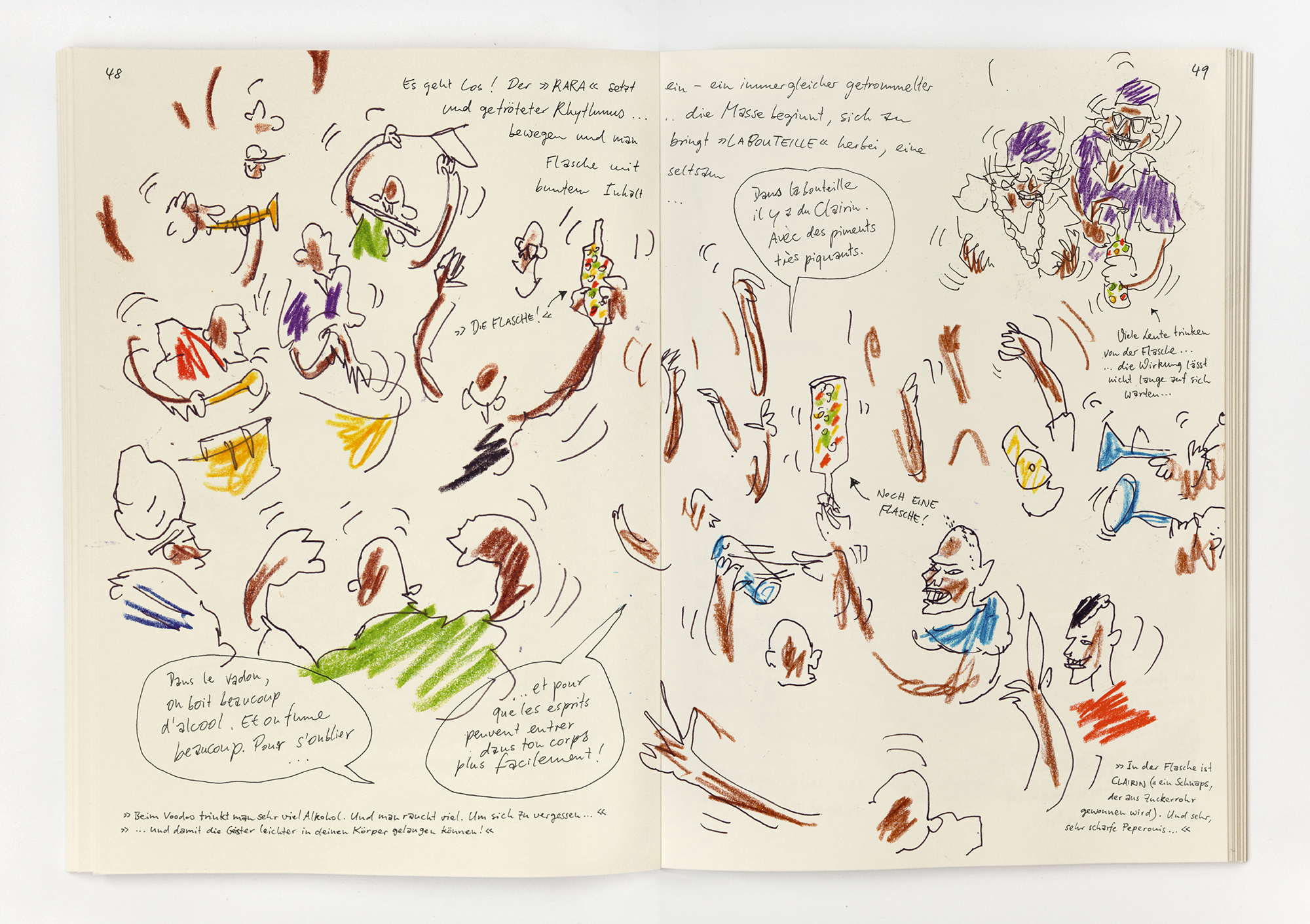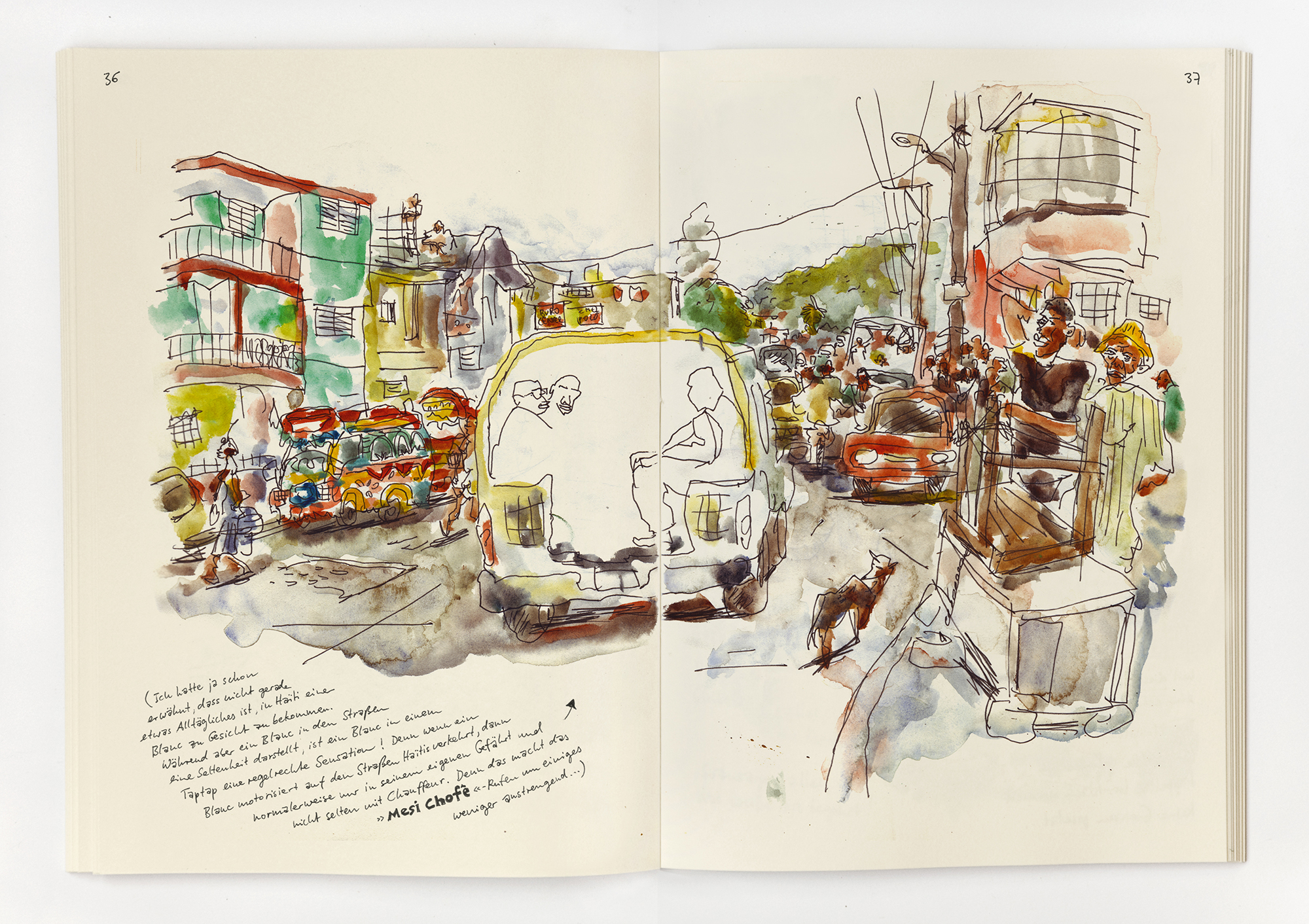 But his drawings speak their individual languages to everyone. Haïti Chéri is an expressionistic palimpsest: its lines, colours, and choppy utterances produce an impression that is stronger than reality."