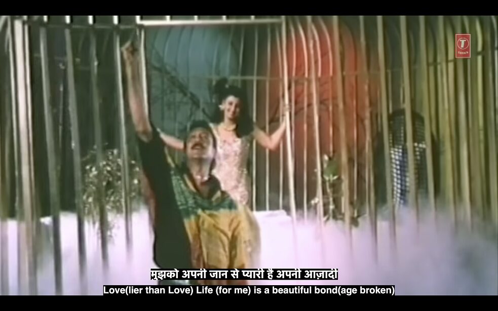 Rukmiṇima, I am at an impasse. Not dejected, but quite un-rested. How you rejuvenate yourself, I do wonder, for I sometimes turn to entertainment. Something often happens over a few frozen frames; banal (or brilliant) perspectival shifts as gazes glance sidewards from protagonist to paraphernalia; a dance(r) breaking free from the shackles of a song(stress), a seductive freedom, he wore black, a Miss India, she wore white, their combined (in)capacity for song-dance, to miss India, tricolour cape, hackneyed Hero, silent slanted smiles, (re)turns, second thoughts(?)