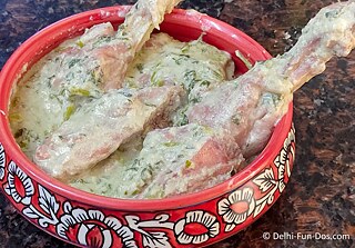 - Once the chicken is cooked, add melon seeds, cashew paste, fresh cream. Let it simmer for a little while.
