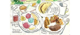 While drawing, Alexandra Klobouk always tries, above all, to tell stories, and with humour. If drawing on the spot, she identifies a particular section or detail that she would like to capture and then try to further reduce the scene down to its essence – through comments, reduction or exaggeration. This artist from Regensburg has received several awards.