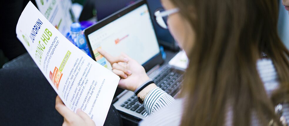 The German Digital JuniorUni is a free online learning platform for young people. It empowers students to find answers to the most exciting questions from the fields of robotics, space, energy, sustainability, nature, and technology—all while learning the German language.