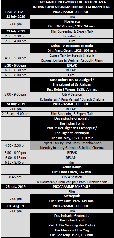 The festival will include discussions by leading scholars such as Professors Suresh Chabria and Ramu Manivannan around expressionistic classics like The Cabinet of Dr. Caligari by Robert Wiene, 1919; Nosferatu by FW Murnau, 1922; Dr. Mabuse, the Gambler by Fritz Lang, 1922 and of course the restored cult classic Metropolis by Fritz Lang, 1926