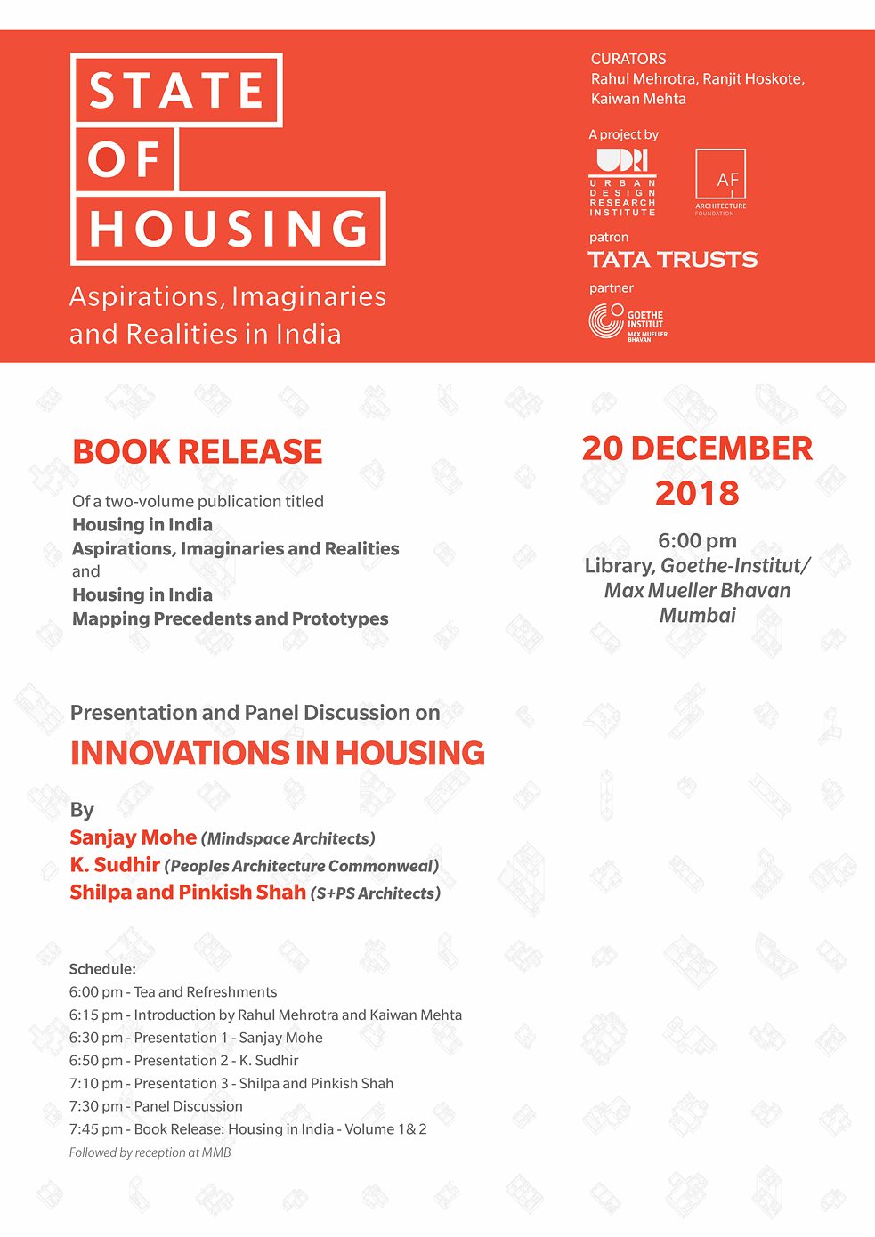 The publications will be released at this event, accompanied by presentations and discussions on Innovative Housing Design Practices and housing Delivery in India with three architecture practices that have developed important housing projects in the recent past.