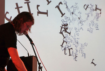 The Viennese language artist, Jörg Piringer combines a range of skills into dynamic, comprehensive works of art: He programs texts, designs animated typography, mixes his own software with live visuals and his vocal art in performances, like in case of his performance system "Nam Shub" (since 2005), where classical methods of Concrete, Visual, or Sound Poetry are programmed as algorithms for text generation. 7