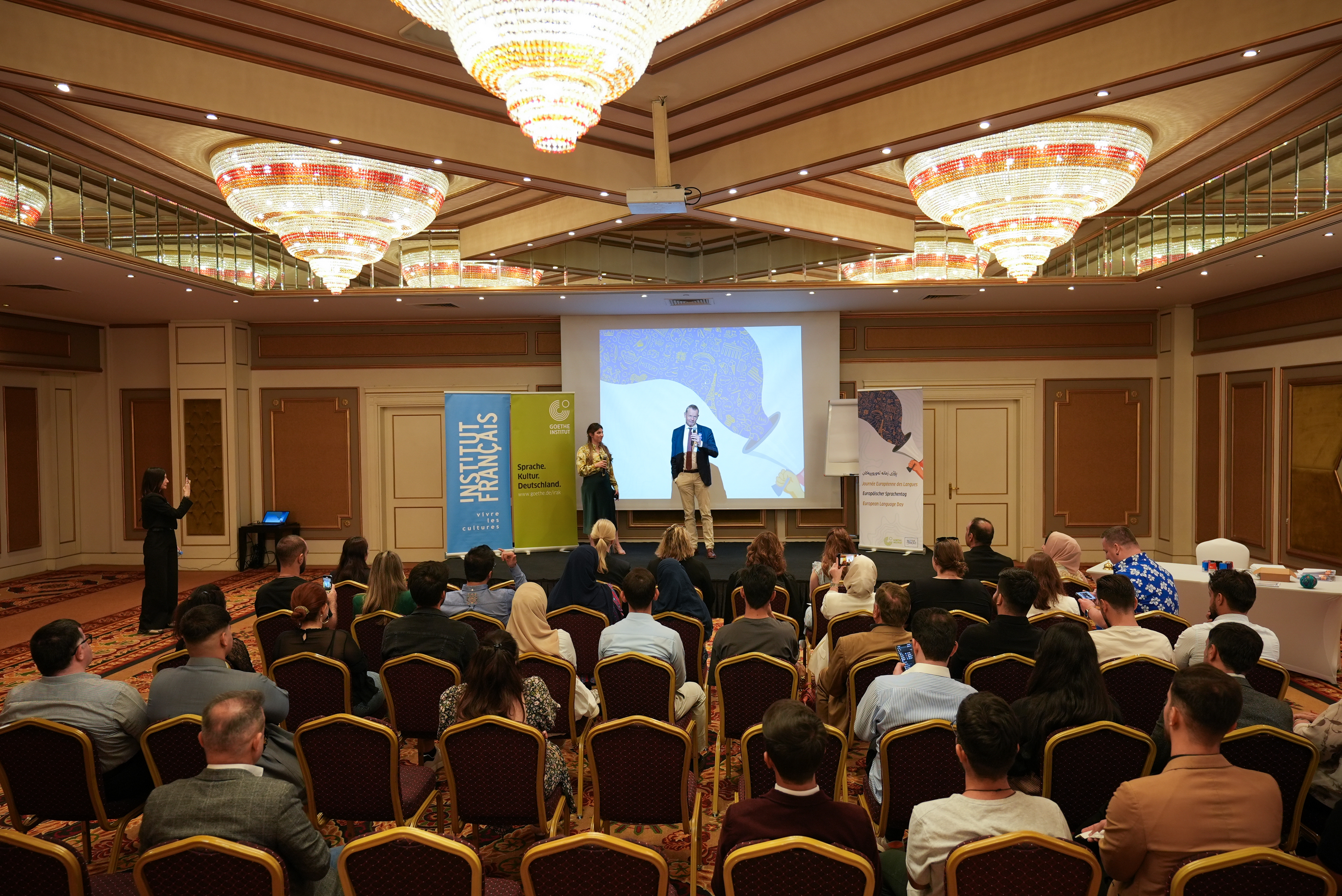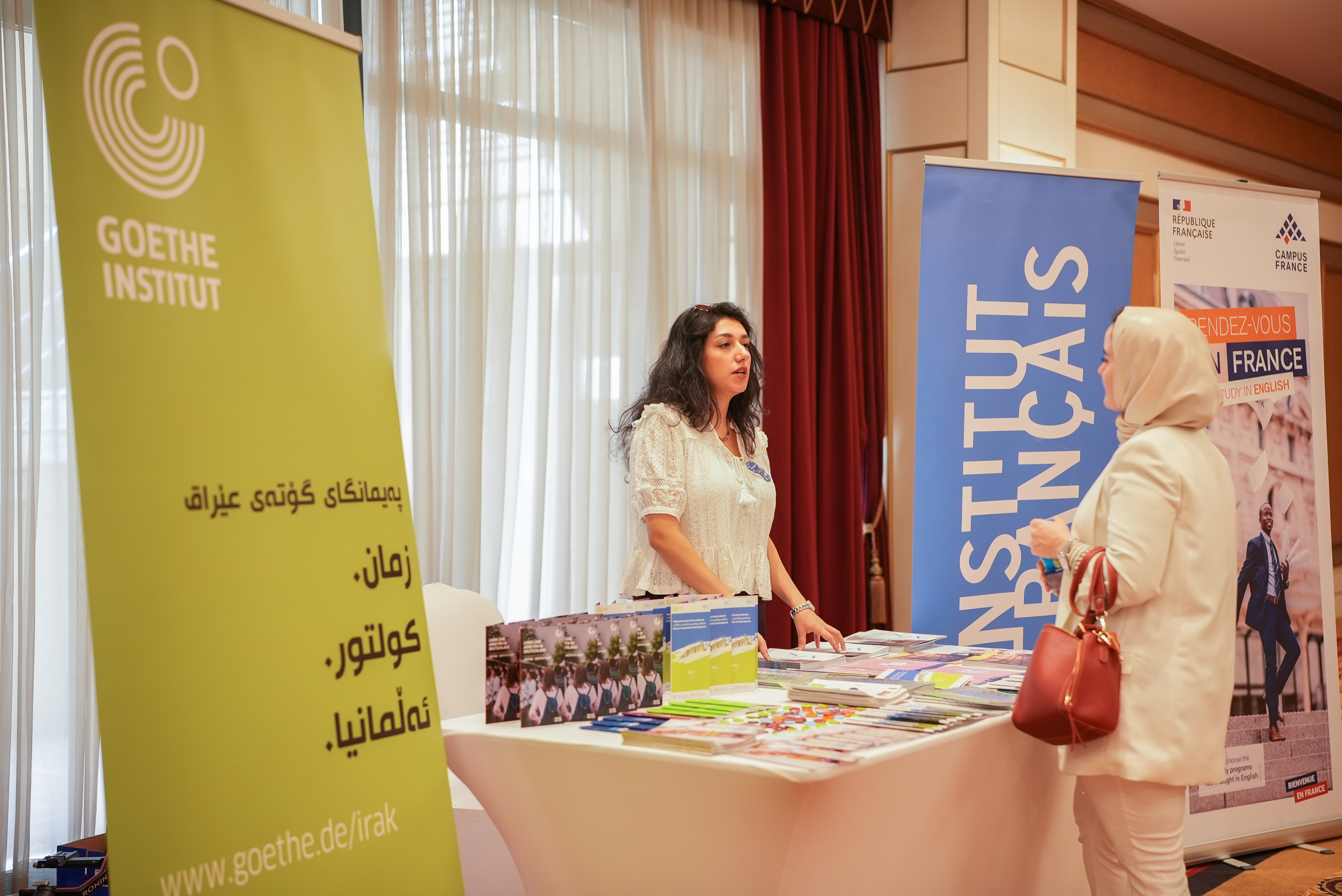Anaïs Boelicke, Leiterin des Goethe-Instituts Irak, und Frederique Tarride, Leiterin des Institut Français d'Irak à Erbil, eröffnen den Sprachentag