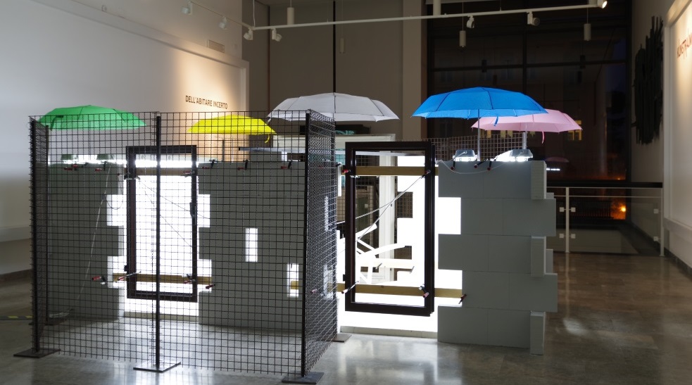 „Vom ungewissen Wohnen“, die Eröffnungsausstellung, befasst sich mit dem Begriff des „Wohnens“ aus einer weitläufigen Perspektive, die von allgemeinen Betrachtungen über die menschliche Existenz bis hin Reflektionen über die materiellen und psychischen Auswirkungen der Migration reicht. Damit greift sie ein programmatisches Leitmotiv des Goethe-Instituts Italien auf, dessen Veranstaltungsschwerpunkte auf Themen wie Lebensbedingungen, Flüchtlingsströme, Krise und Familie in Europa liegen.