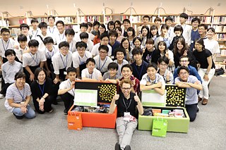 Nach ungefähr 30 Minuten waren alle Teams fertig und versammelten sich erneut in der Bibliothek, wo sie erst einmal mit leckerem Streuselkuchen belohnt wurden. Nach einer kurzen Einführung in den Bestand und die Benutzung der Bibliothek, folgte die „Siegerkrönung“. Den erst- und zweitplatzierten Schulen winkte jeweils eine vorher aufbereitete „Schatzkiste“, die randvoll mit DVDs, Spielen zum Deutschlernen, Büchern zur Landeskunde, Sprache und Kultur, Comics und mit Augmented Reality unterstützten Elementen wie auch den dazugehörigen VR/AR Brillen gefüllt waren. Diese Kisten eroberten mit einem knappen Vorsprung die Städtische Oberschule Kitazono und auf dem zweiten Platz die Waseda Universitätsoberschule. Die Medienkisten werden beiden Schulen für ein halbes Jahr geliehen und anschließend an die Dokkyo Oberschule und die Technische Fachoberschule Kisarazu übergeben. Doch auch die Schülerinnen und Schüler dieser Schulen gingen nicht mit leeren Händen nach Hause. Für ihre Mühen erhielten sie einen Gutschein für eine „VR-Experience“ in der Bibliothek des Goethe-Instituts.