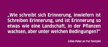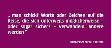 Literatur als Feminismus, Schreiben unter dem Zeichen "Frau", Schreiben in Japan bzw. in Deutschland: Als die Schriftstellerinnen Yui Tanizaki und Lilian Peter sich 2019 in Kyoto kennen lernten und ins Gespräch miteinander kamen, entstand eine spontane Freundschaft, an die sie nun, eineinhalb Jahre später, wieder anknüpfen – diesmal in ihrer jeweiligen Mutter- und Schreibsprache, in Form von Briefen, die von den Literaturübersetzerinnen Miho Matsunaga und Isolde Kiefer-Ikeda übersetzt werden und fortlaufend erscheinen. Dieser Briefwechsel ist zu keinem Zeitpunkt privat, sondern von Anfang an eingeschrieben in einen öffentlichen Raum, in Fragen des Übersetzens und Übersetztwerdens zwischen den Kultur- und Zeichensystemen des Japanischen und des Deutschen. Ein literarisches Experiment im Spannungsverhältnis zwischen persönlicher Adressierung, Übersetzung und instantaner Veröffentlichung.