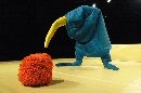 Die Figurenspielerin Anne-Kathrin Klatt macht sich auf Entdeckungsreise durch die Abenteuer des Lebendigwerdens: „Solo mit Nase“ ist ein phantasievolles Theaterstück mit Kostümfiguren, die sich immer wieder in neue Wesen verwandeln. Aus einem unförmigen, comic-artigen „Etwas“ wächst ein Fuß, ein Fühler, der zur Hand wird, ein Kopf, eine Nase?! Verrückte neue Lebensformen entstehen bis ein ganzer Mensch daraus geworden ist. Auf sehr poetische Weise, ganz ohne Worte aber mit wundersamer und witziger Musik, wird hier eine kleine Entwicklungsgeschichte der Menschheit erzählt, die Geschichte über das Wunder des Lebens!