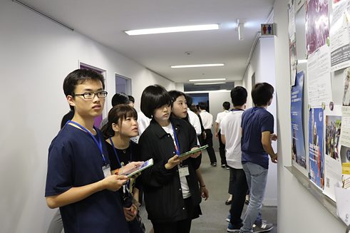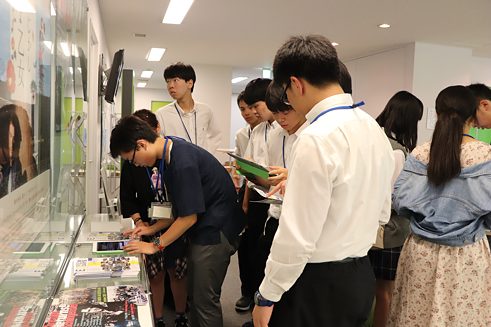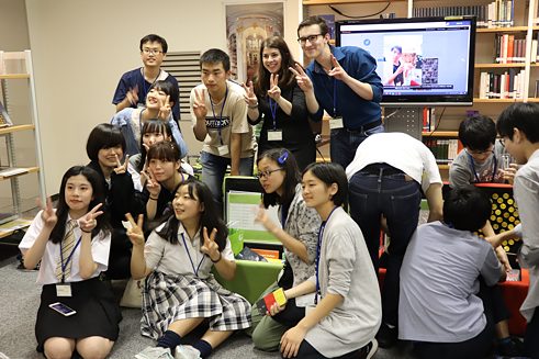 このラリーは、2階と3階のポスターや本、チラシなどの情報から、なるべく多くの質問に答えてポイントを貯めるというゲーム。「ゲーテの生まれた場所はどこか?」「7月13日から14日にかけてゲーテ・インスティトゥートでベルリンからの演劇教育者、Anne Zühlkeと共に行うPASCHのイベントとは?」などの質問。また、“Quietscheentchen“, „Büroklammer“, „Schwarzwälder Kirschtorte“などのドイツ語の単語を発音してみて自らを動画に収めるという創造力を必要とすることもやった。各チームで面白そうな表紙の本を紹介するために探してたときは、大いに盛り上がっていた。